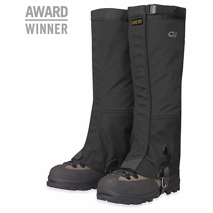 The Outdoor Research Crocodiles are heavy-duty gaiters made for trekking and mountaineering in cold alpine environments. Featuring 3-layer GORE-TEX® construction, these crocs are windproof, waterproof, and exceptionally durable. Once the underfoot strap is adjusted, you can simply step into them and secure with the front velcro closure and top buckle.
