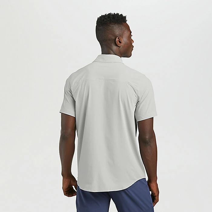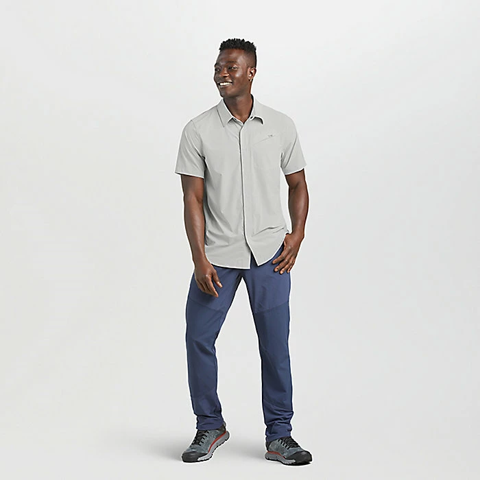 The Outdoor Research Men’s Astroman SS Sun Shirt is a button up shirt for easy comfort on a warm day. Short sleeved and lightweight, you can jump in the car for a road trip, head to the park for a picnic or just stroll around town and wind up having dinner al fresco. Constructed from nylon and spandex it wicks moisture, dries fast and offers UPF 50+ protection against the sun. Respectable for the town, functional on the trail.
