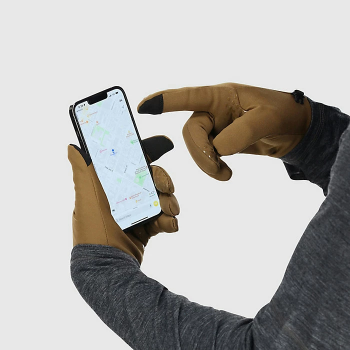 The Outdoor Research Men’s Vigor Midweight Sensor Glove is a fleece liner for high-exertion activity in the cold. Run winter trails, climb a mountain, go snowshoeing, whatever it is you’re doing, protect your hands and fingers with the ActiveTemp fleece. A polyester and spandex blend is soft against the skin, wicks moisture and dries fast. Wear alone in mild winter weather or under a shell or insulated glove in colder temps. When it’s break-time, whip out your phone and text away, the thumb and index fingertip are touchscreen compatible.