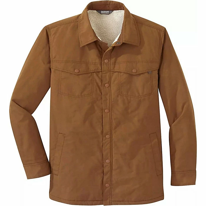 The Outdoor Research Men’s Wilson Shirt Jacket is an insulated shacket made for cool and cold-weather layering. Fluffy Sherpa fleece lines the interior to keeps you nice and cozy, and synthetic insulation in the sleeves provides low-bulk warmth. Snaps for easy on and off, and a water-resistant exterior to shed light rain and snow.