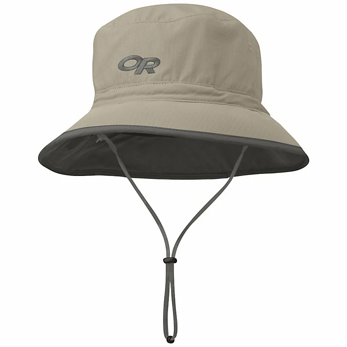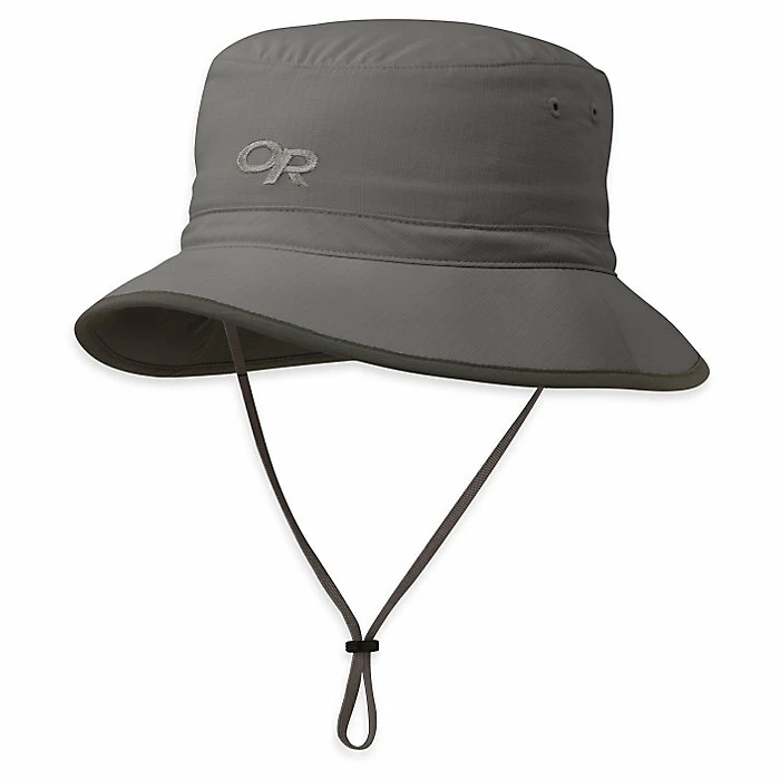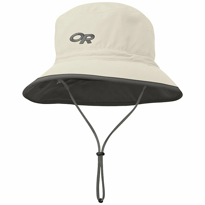 The Outdoor Research Sun Bucket Hat. This bucket offers UPF 50+ sun protection. The shorter brim is more stable in gusty conditions, but still offers sun protection. A drawcord adjustment keeps it firmly attached to your head.